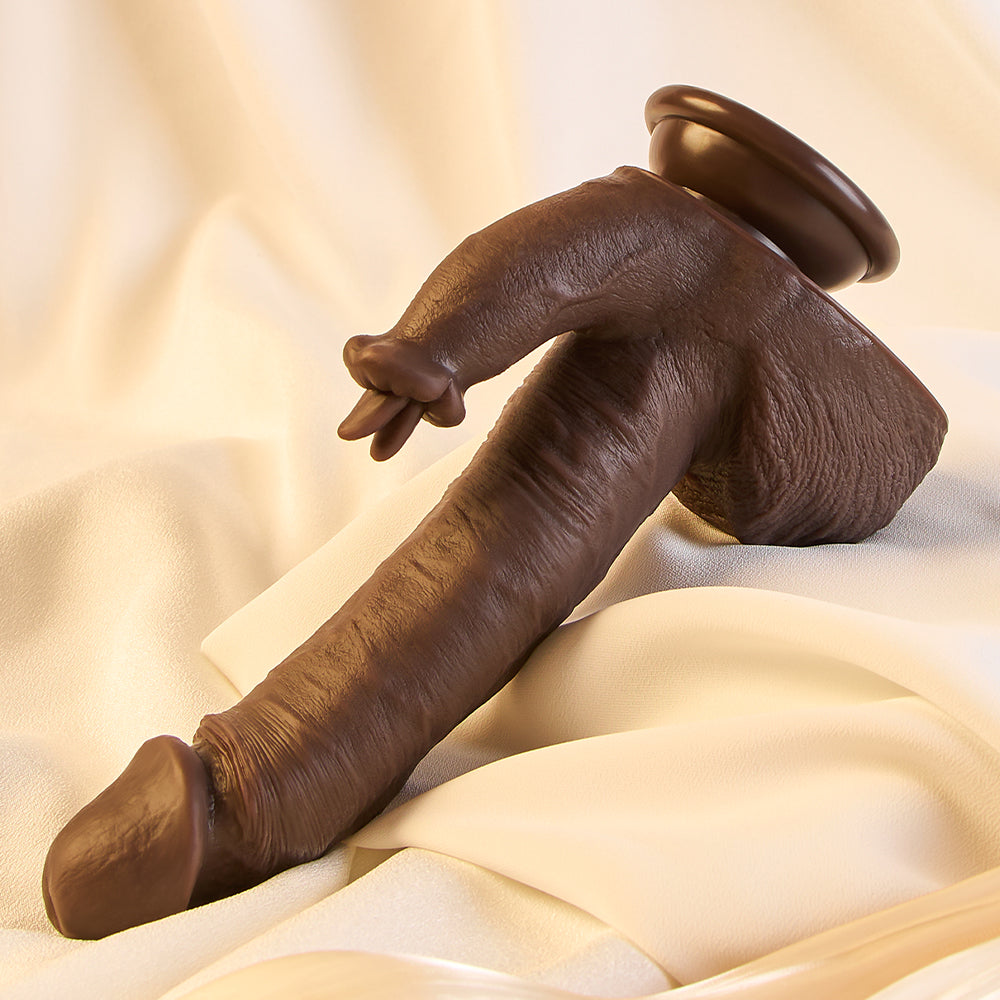 Designed with lifelike details including vein texture and a soft insertion tip, the 7.5-inch insertable length supports focused internal stimulation. The flexible tongue elements add external contact while the body maintains a natural feel.