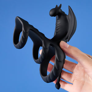 This vibrating cock ring features a distinctive dragon-shaped design that blends visual impact with functional pleasure. The sculpted form adds character while positioning vibration to support erection enhancement and shared stimulation during intimate moments.